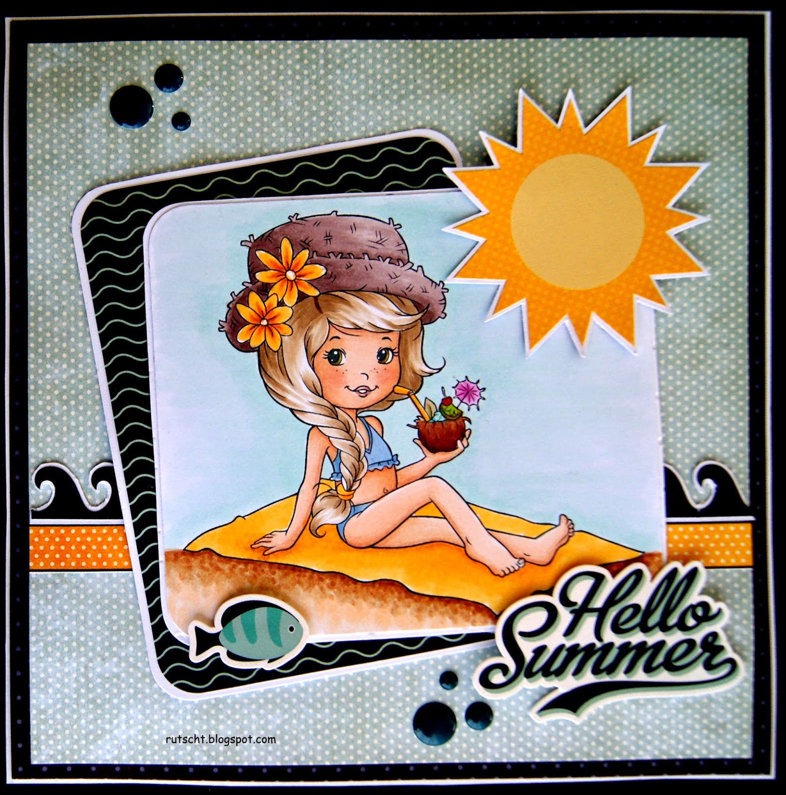 Llevo varios días sin aparecer por aquí. Tengo a todos en casa de vacaciones, así que es un poco difícil poder ponerse a hacer nada... entre rato y rato he podido hacer esta tarjeta con sello de Mo's Digital y papeles de The Scrapcake.